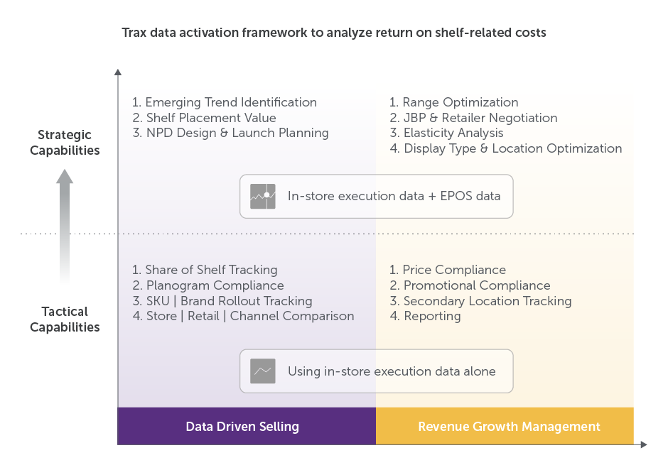 Organizing your data around specific business imperatives is a good starting point; for example, data-driven selling (how to ensure that you are directing activities and maximizing impact at the individual store level) and revenue growth management (how to use promotional dollars to drive the most effective type of activation in-store).