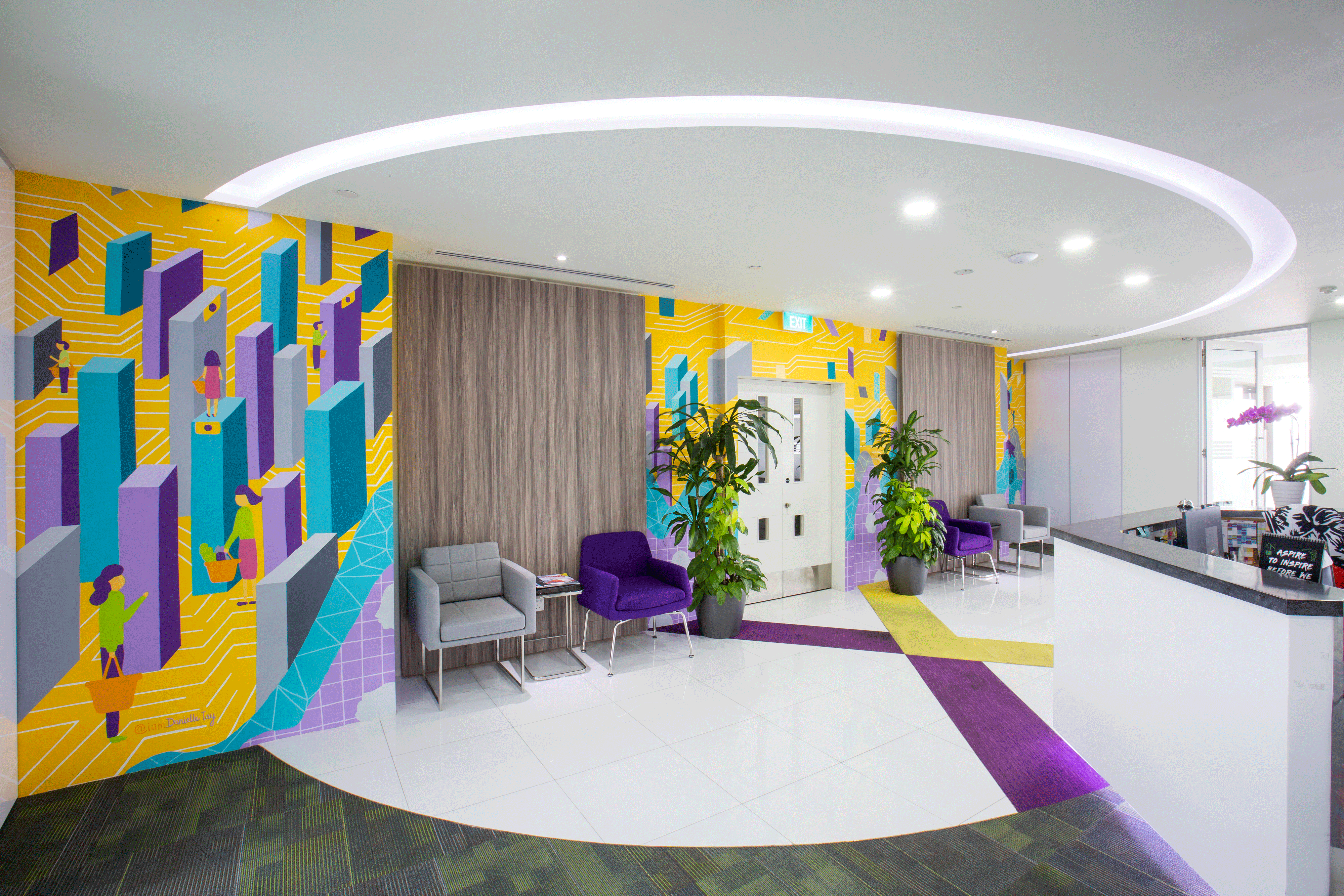 When visual artist Danielle Tay entered the Trax Singapore office, she sensed an unmistakable air of cheer and positivity. The people, the ambiance and the facilities all embody what it means to be part of a modern workplace. To supercharge this energy and vibrancy, Danielle fused powerful messaging and riveting art in a set of four murals at our headquarters. Manu Krishna from Trax chatted with Danielle about her artistic inspiration, creative collaboration, and her unique approach to the Trax project.