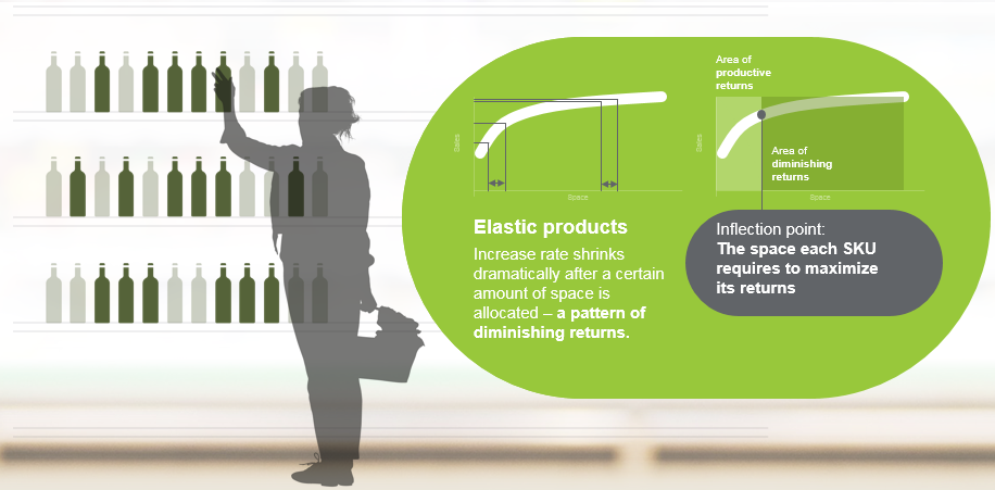 Once retailers and CPGs know this, they can identify which products are below their inflection point and which are above. They can then re-allocate shelf space accordingly to maximize return.