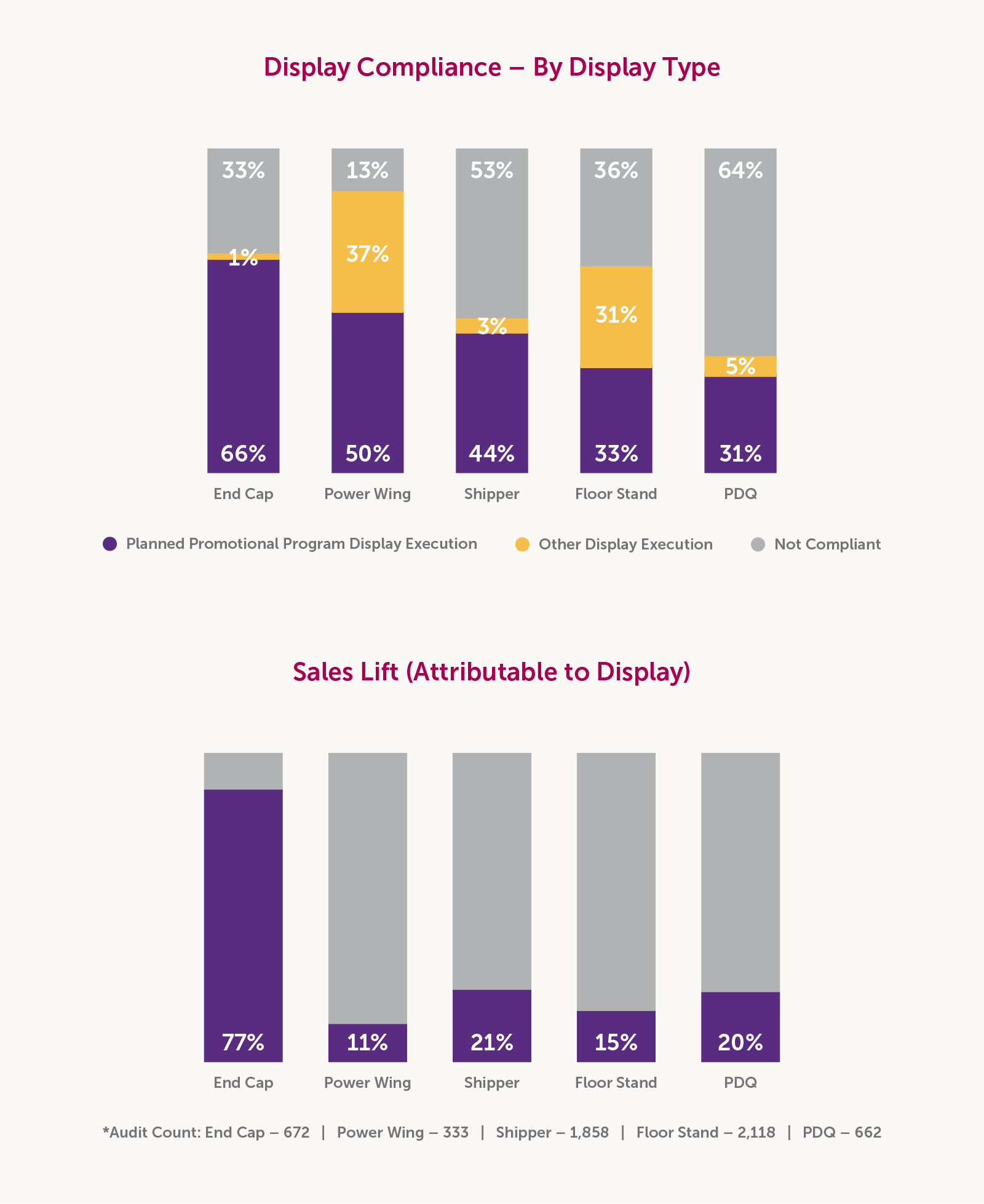 More importantly, compliant displays saw a higher sales lift. End caps showed the highest rates of compliance, and it’s no coincidence that this display type was also responsible for the highest sales lift.