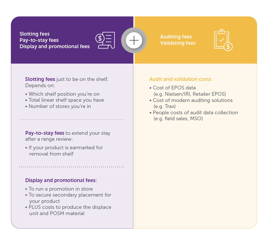 The ever-growing portfolio of brands and high competition for shelf space allows retailers to command considerable shelf space fees. There have been numerous arguments about whether the fees charged actually enhance space allocation efficiency or encourage backroom deals between stores and manufacturers that promote monopoly. But as it stands today, these are the broad types of costs incurred by manufacturers: