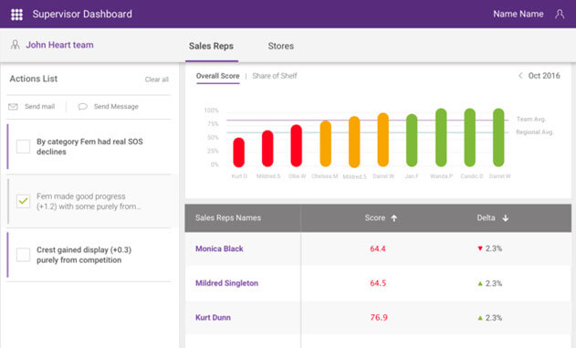 In addition to store-level actionable tasks delivered in real-time to each sales rep, Trax also combines the data from every store for more detailed analysis. This aggregated data is processed through multiple industry-standard and custom KPI engines. The resulting dashboards and reports are available 24/7 to sales managers and executives throughout the region.