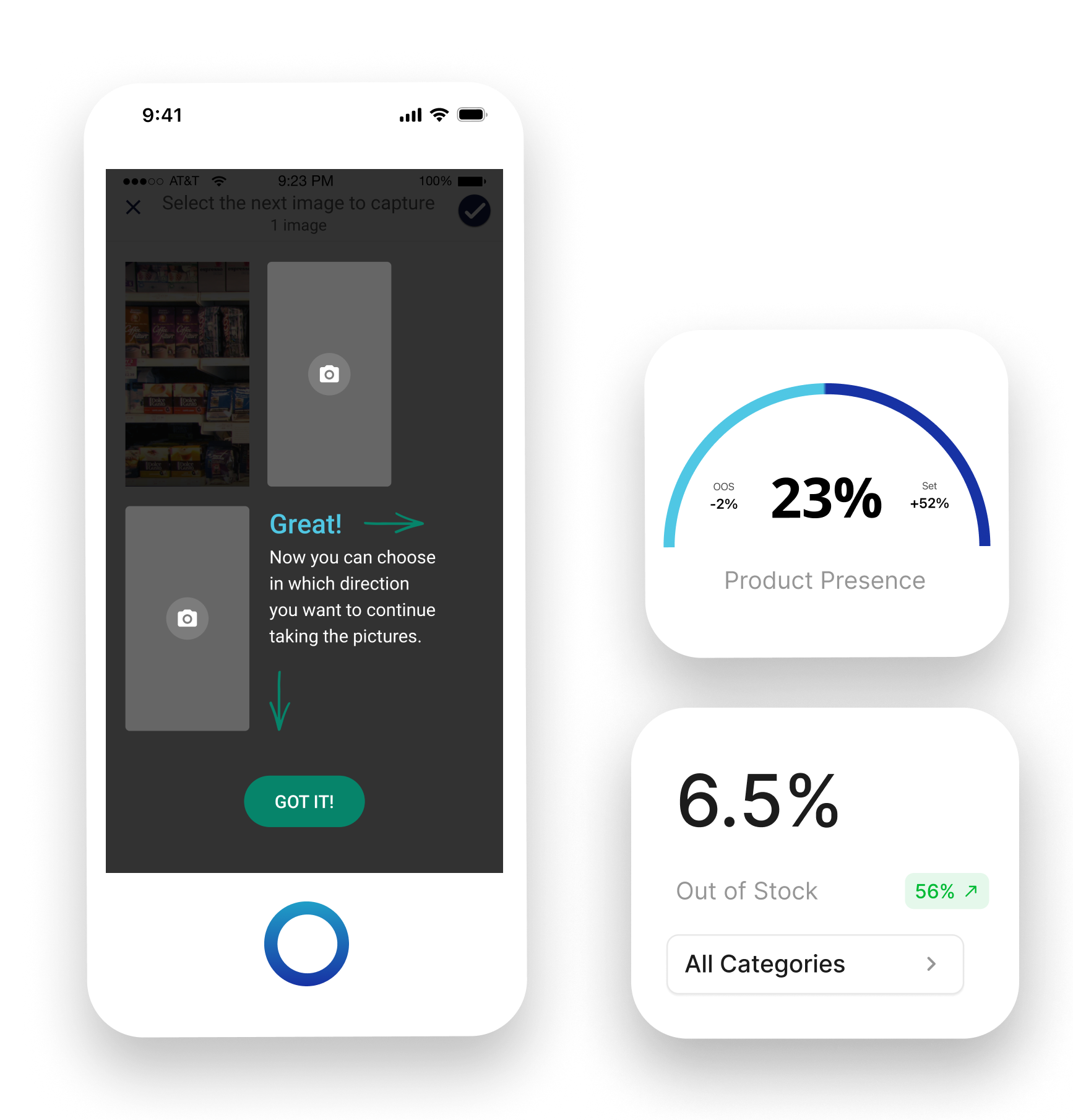 Μέσα σε λίγα λεπτά από τη λήψη και τη μεταφόρτωση των εικόνων, οι ομάδες πεδίου λαμβάνουν τα ανάλογα KPIs, καθώς και μια λίστα διορθωτικών ενεργειών που πρέπει να εκτελέσουν στο κατάστημα. Ο εκπρόσωπος παράλληλα έχει τη δυνατότητα να αναφέρει τυχόν προβλήματα που πιθανόν να αντιμετωπίσει. Μόλις διορθωθούν τα εκάστοτε προβλήματα, ο εκπρόσωπος μπορεί να τραβήξει νέες εικόνες της διορθωμένης κατάστασης, λαμβάνοντας ενημερωμένο KPI report.