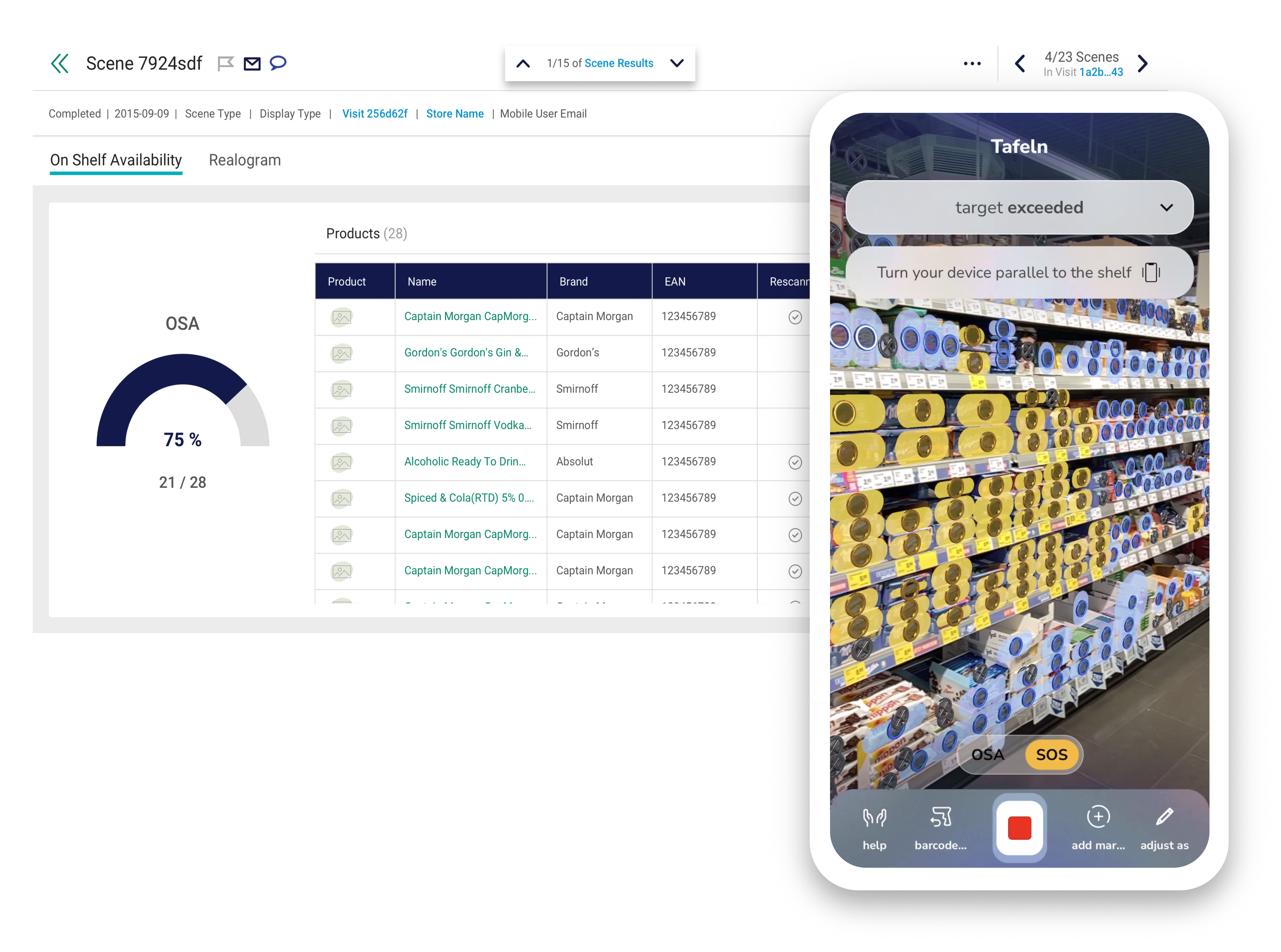 Ταυτόχρονα, παρέχεται μία λίστα διορθωτικών ενεργειών. Ο χρήστης μπορεί να αναφέρει ή να διορθώσει άμεσα τυχόν προβλήματα, δίχως την ανάγκη αναμονής επιπλέον δεδομένων και reports. Εξασφαλίστε συλλογή δεδομένων χωρίς περιορισμούς. Το σύστημά μας καταγράφει λεπτομερείς πληροφορίες σχετικά με τη διάταξη των ραφιών, την τοποθέτηση προϊόντων και τα επίπεδα αποθέματος, μειώνοντας τις χειροκίνητες ενέργειες – ακόμα και όταν η σύνδεση Wi-Fi δεν λειτουργεί.